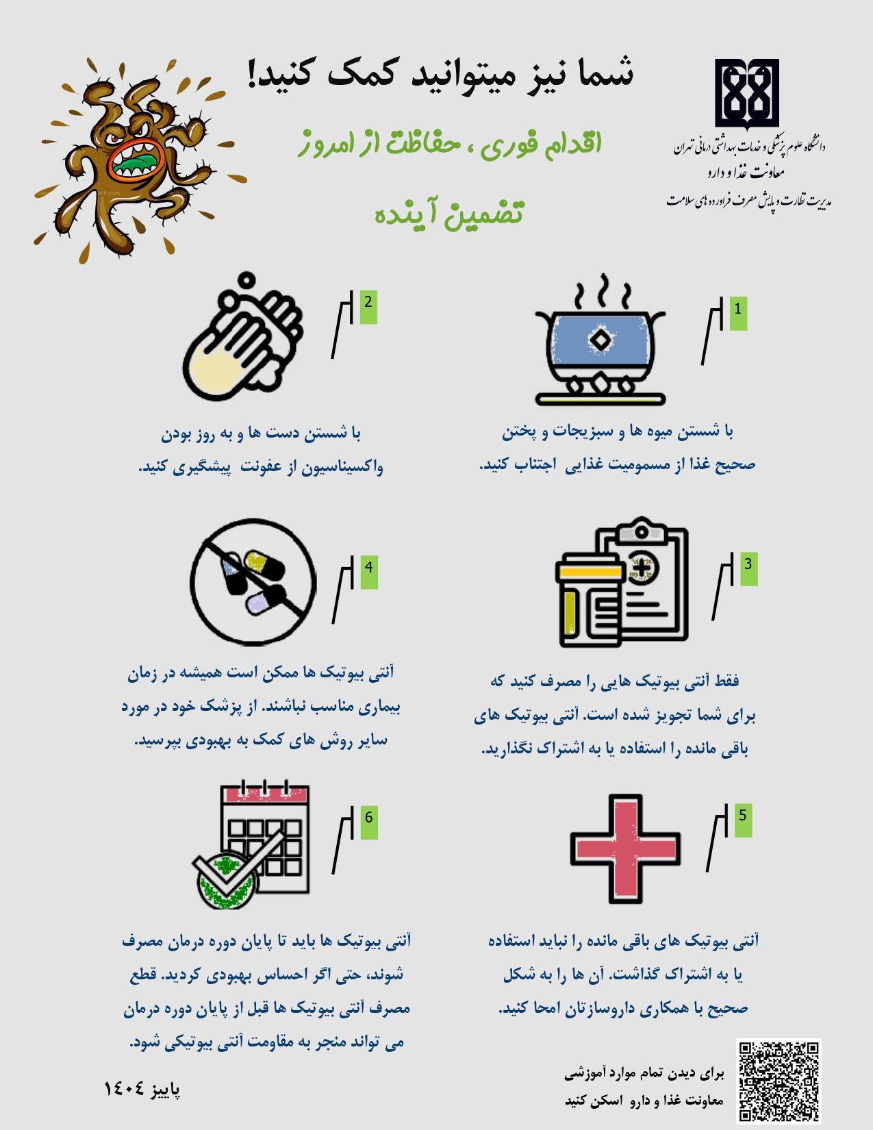 کد خبر : 310516 تاریخ انتشار : 1404/08/28 - 08:39 بازدیدکنندگان : 67 پوسترهای پزشکی و دارویی مقاومت میکروبی؛ شما نیز میتوانید کمک کنید! در پیشگیری از مقاومت میکروبی شما نیز میتوانید کمک کنید! کپی