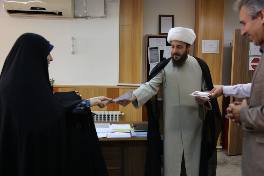 به گزارش روابط عمومی دانشگاه علوم پزشکی تهران معاونت غذاو دارو، در آستانه فروغ فرخنده میلاد بانوی قهرمان صبر و وفا، حضرت زینب کبری (س) و روز تکریم پرستار، حجت الاسلام امیرحسین کمیجانی مسئول امور خوابگاههای نهاد رهبری و دانشگاه به منظور تبریک این روز به کارکنان معاونت غذا و دارو با اهدای هدیه ای نمادین و پخش شیرینی بر توجه به امر نماز در میان کارکنان این حوزه تاکید و توجه به نماز را به عنوان ستون دین امری مهم در مسیر موفقیت هر انسان عنوان کرد و ابراز داشت: در این روز فرخنده، خالی از لطف نیست که از حضور گرم و دل های پرشورتان دعوتی بعمل آوریم تا در مراسم شکوه بخش نماز جماعت حاضر شوید و فضای اداره را با یاد خدا معطر گردانیم.