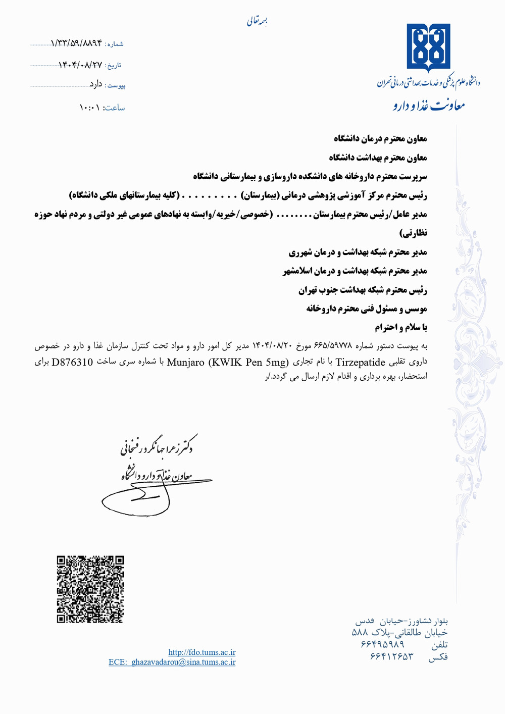 معاونت غذا و دارو | اطلاع رسانی در خصوص داروی تقلبی Tirzepatide