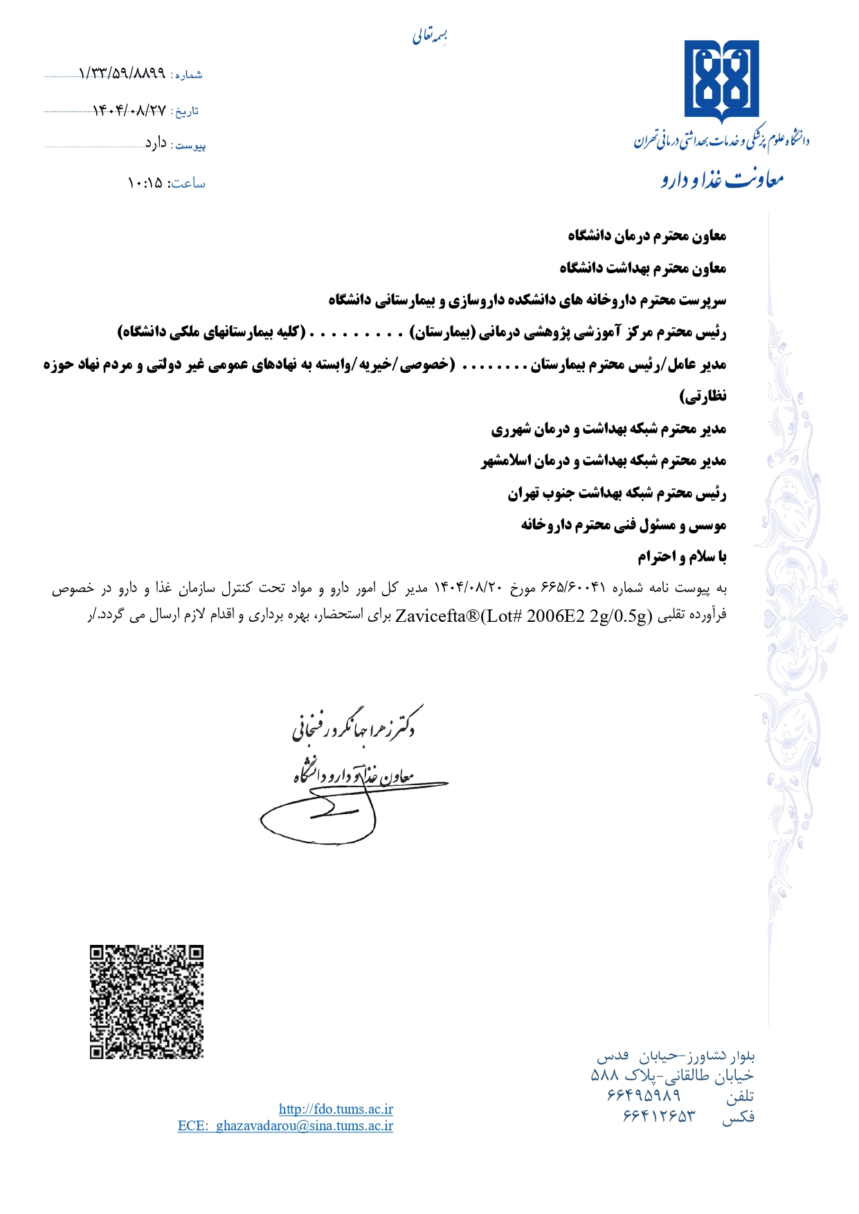معاونت غذا و دارو | اطلاع رسانی در خصوص فرآورده تقلبی Zavicefta