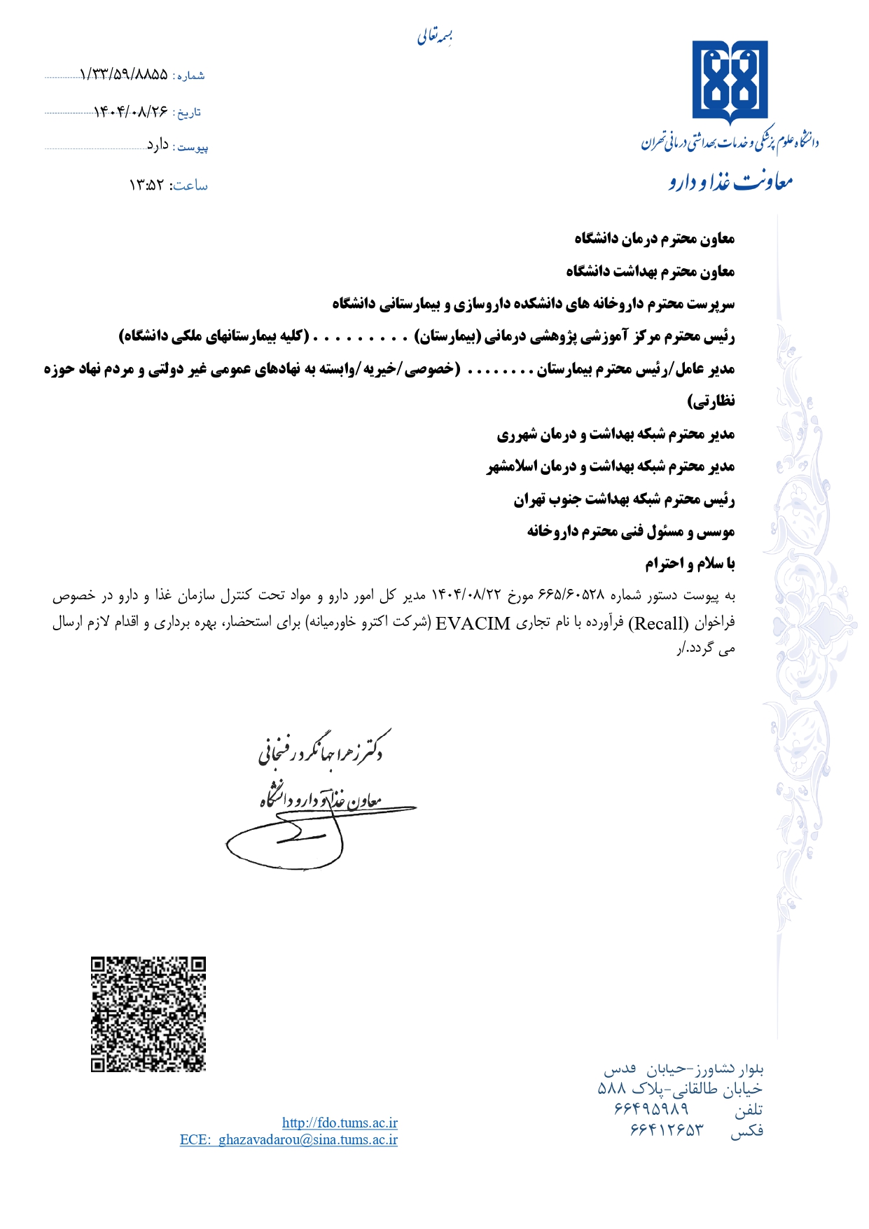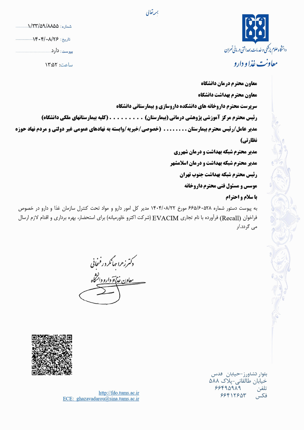اطلاع رسانی در خصوص فراخوان ریکال با نام تجاری EVACIM شرکت اکترو خاورمیانه در خصوص فراخوان ریکال با نام تجاری EVACIM شرکت اکترو خاورمیانه توسط معاون غذا و دارو اطلاع رسانی شد. دریافت اطلاع رسانی در خصوص فراخوان ریکال با نام تجاری EVACIM شرکت اکترو خاورمیانه کد خبر : 310482 کپی کلمات کلیدی اطلاع_رسانی_در_خصوص_فراخوان_ریکال_با_نام_تجاری_evacim__شرکت_اکترمعاون_غذا_و_دارو